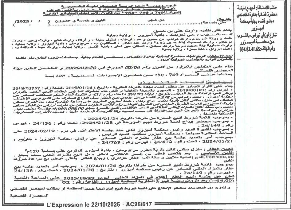 Il sera procédé à la vente au plus offrant et dernier enchérisseur le :
