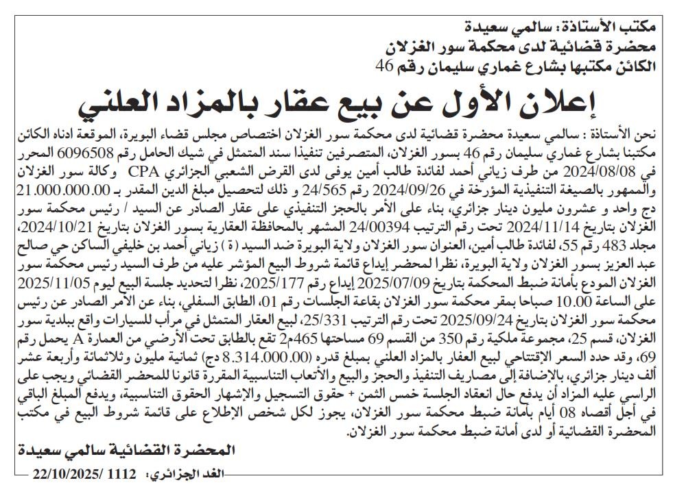 | Paru dans le journal : الغد الجزائري | |