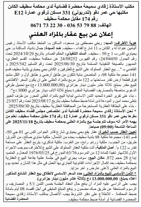 Il sera procédé à la vente au plus offrant et dernier enchérisseur le :