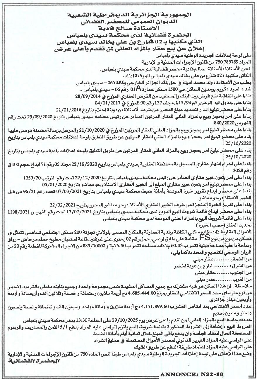 Il sera procédé à la vente au plus offrant et dernier enchérisseur le :