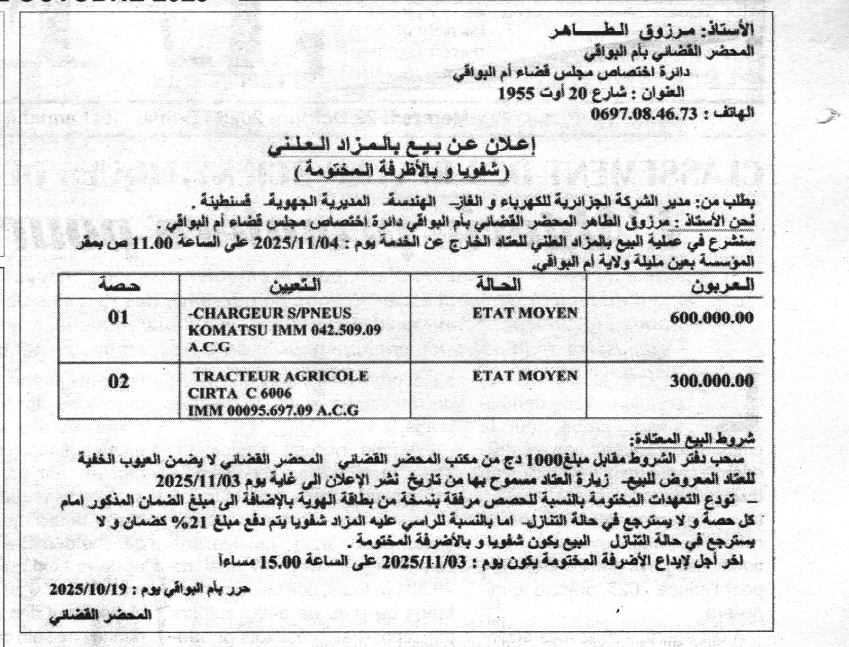 Il sera procédé à la vente au plus offrant et dernier enchérisseur le :