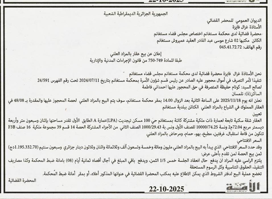 Il sera procédé à la vente au plus offrant et dernier enchérisseur le :