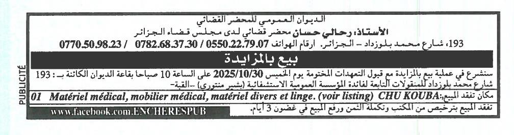 Il sera procédé à la vente au plus offrant et dernier enchérisseur le :