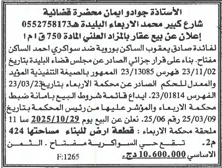Il sera procédé à la vente au plus offrant et dernier enchérisseur le :