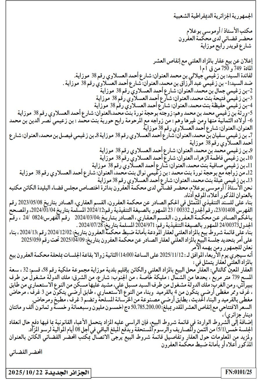 Il sera procédé à la vente au plus offrant et dernier enchérisseur le :