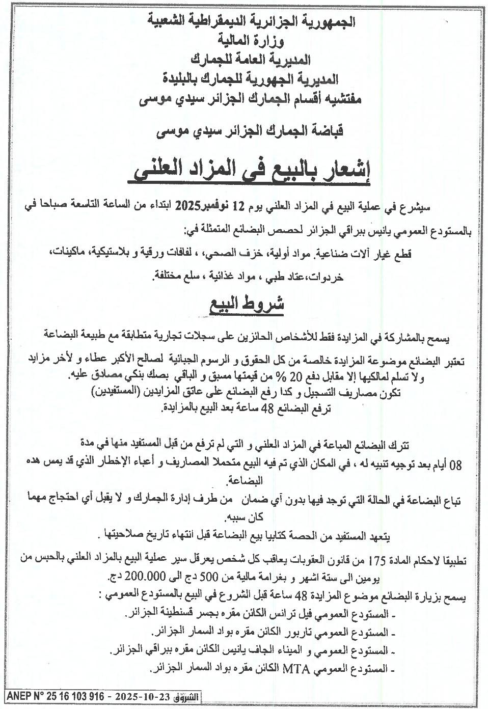 Il sera procédé à la vente au plus offrant et dernier enchérisseur le :