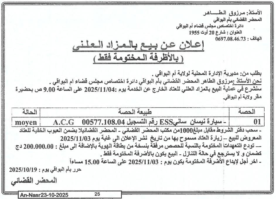 Il sera procédé à la vente au plus offrant et dernier enchérisseur le :