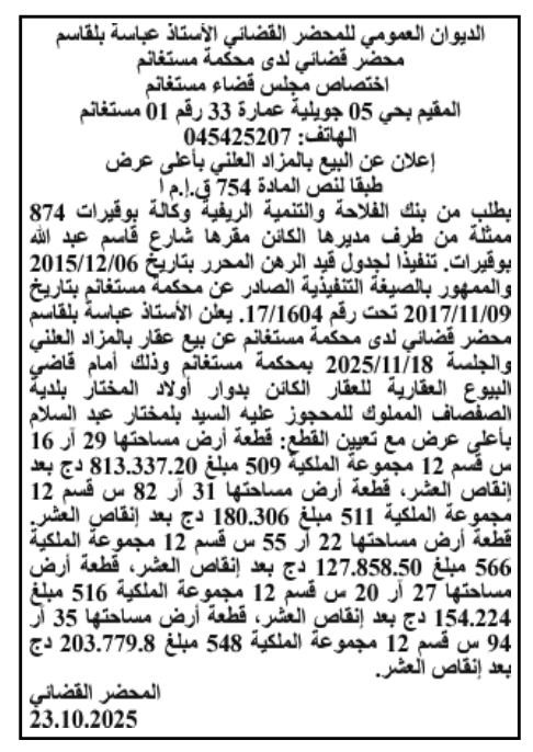 Il sera procédé à la vente au plus offrant et dernier enchérisseur le : 18/11/2025';