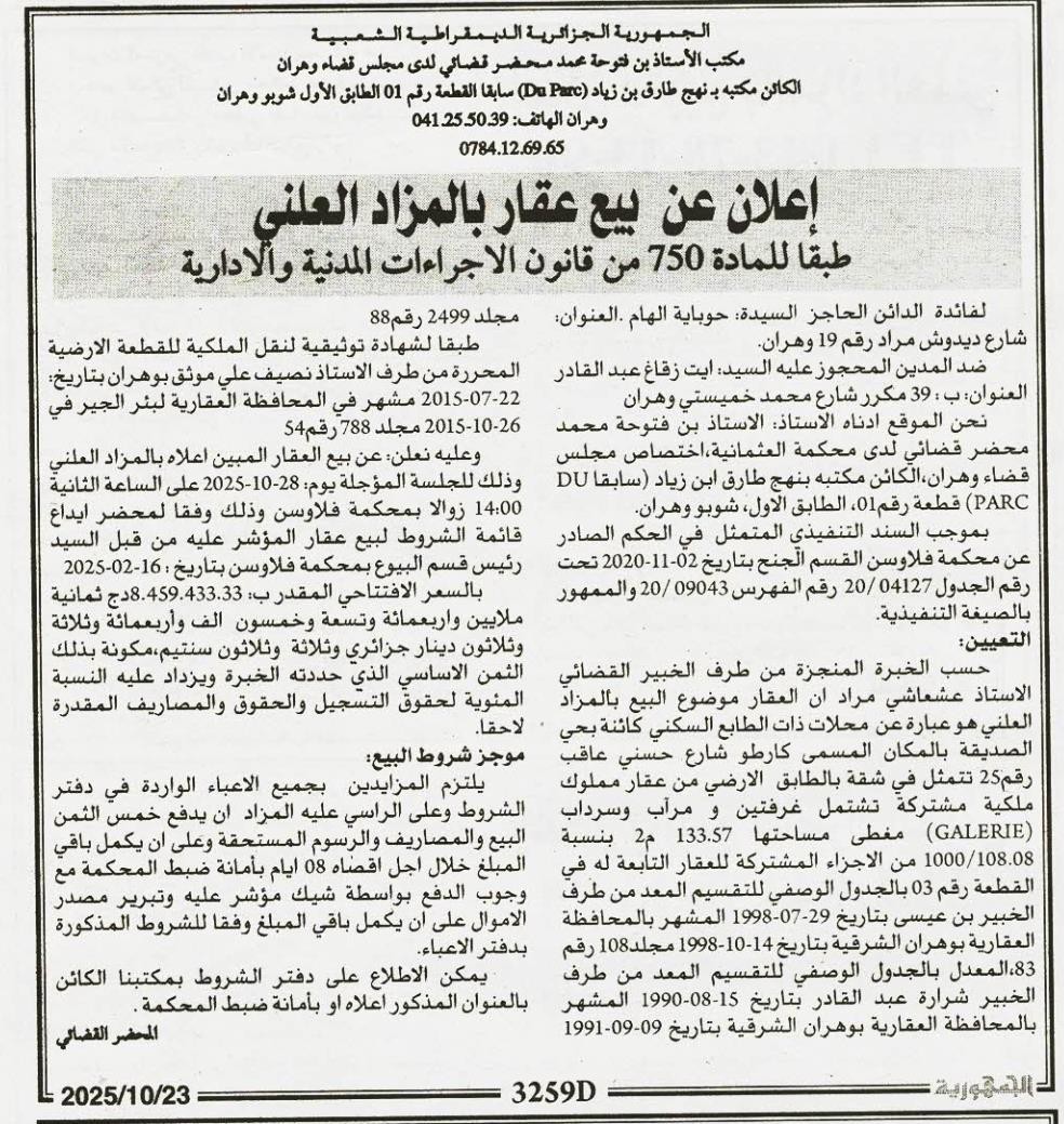 Il sera procédé à la vente au plus offrant et dernier enchérisseur le :