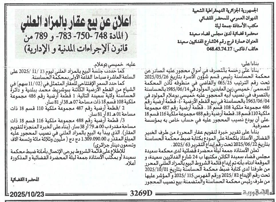 Il sera procédé à la vente au plus offrant et dernier enchérisseur le :