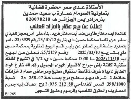Il sera procédé à la vente au plus offrant et dernier enchérisseur le :