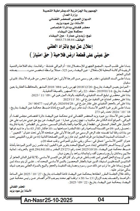 Il sera procédé à la vente au plus offrant et dernier enchérisseur le :