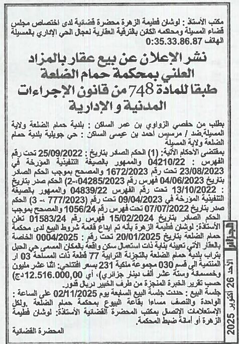 | Paru dans le journal : الجزائر | |