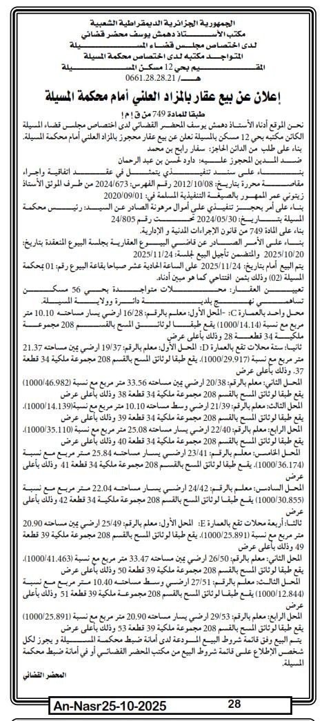 Il sera procédé à la vente au plus offrant et dernier enchérisseur le :