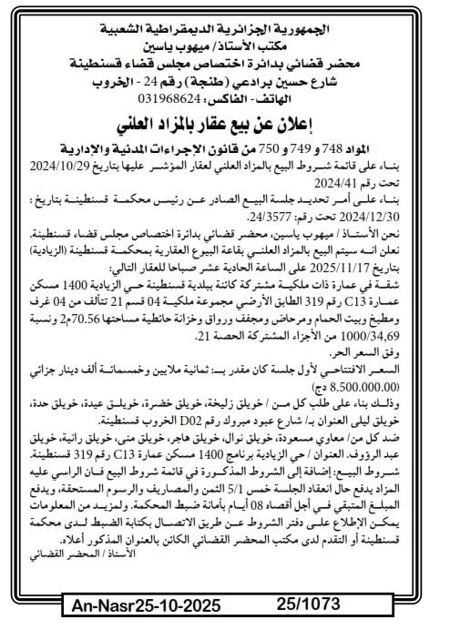 | Paru dans le journal : النصر | |