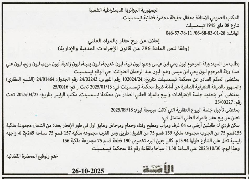 Il sera procédé à la vente au plus offrant et dernier enchérisseur le :