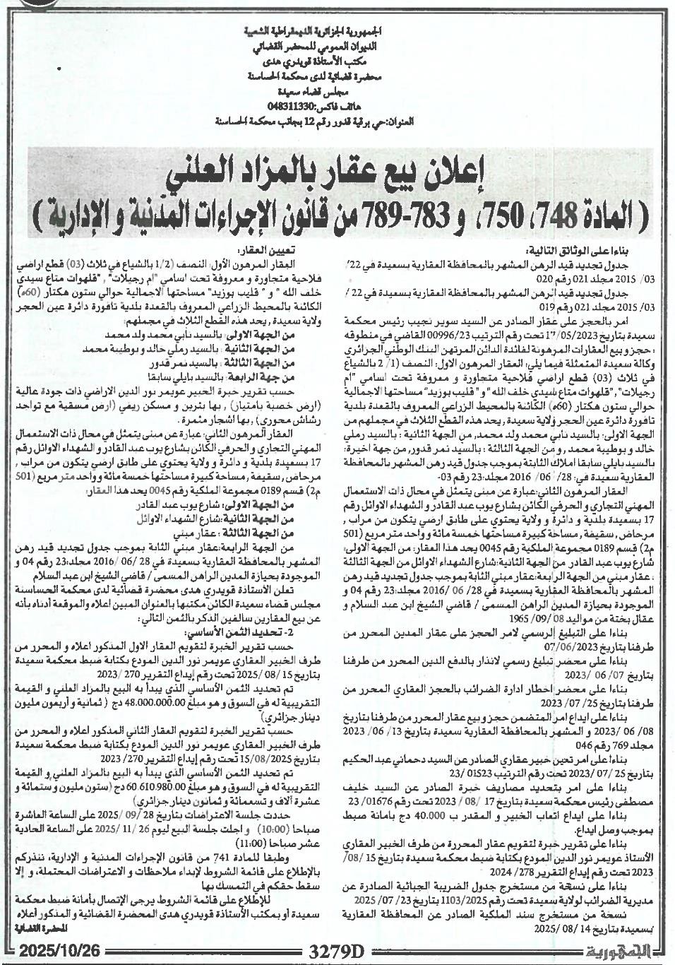 Il sera procédé à la vente au plus offrant et dernier enchérisseur le :