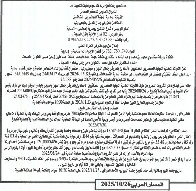 Il sera procédé à la vente au plus offrant et dernier enchérisseur le :