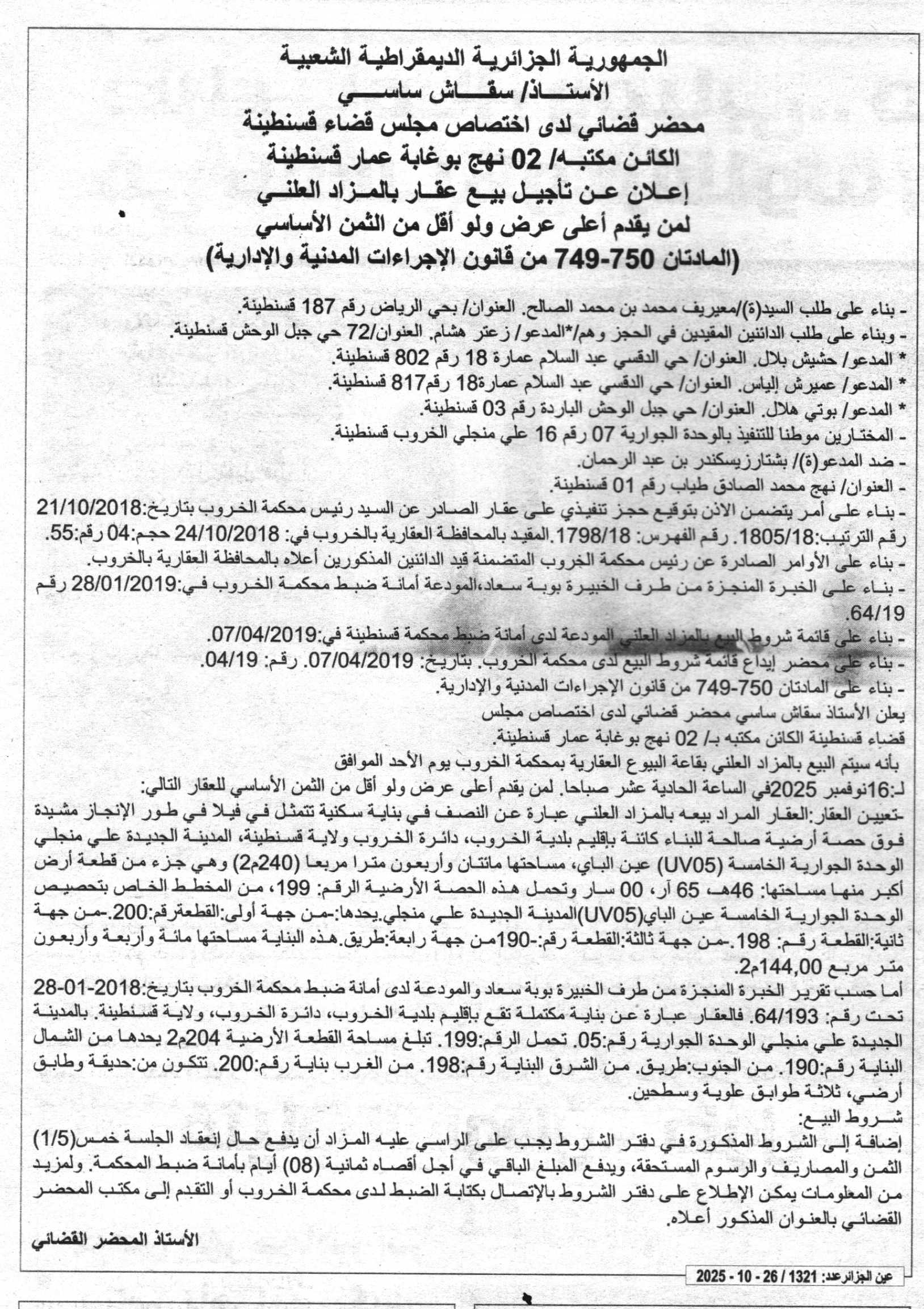 Il sera procédé à la vente au plus offrant et dernier enchérisseur le :