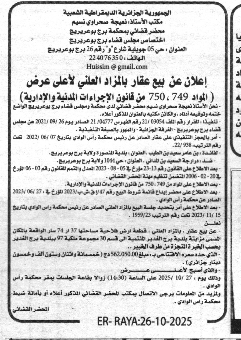 Il sera procédé à la vente au plus offrant et dernier enchérisseur le :