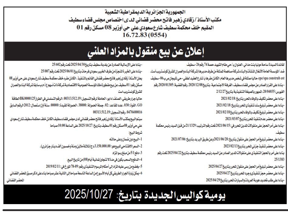 Il sera procédé à la vente au plus offrant et dernier enchérisseur le :