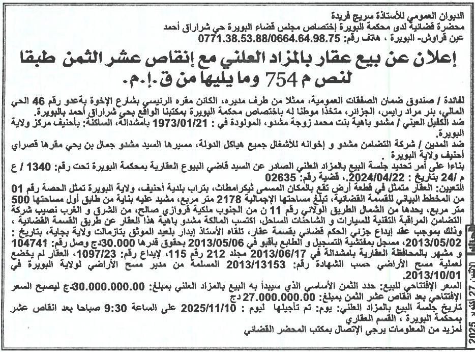 Il sera procédé à la vente au plus offrant et dernier enchérisseur le :