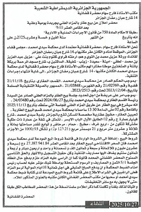 Il sera procédé à la vente au plus offrant et dernier enchérisseur le :