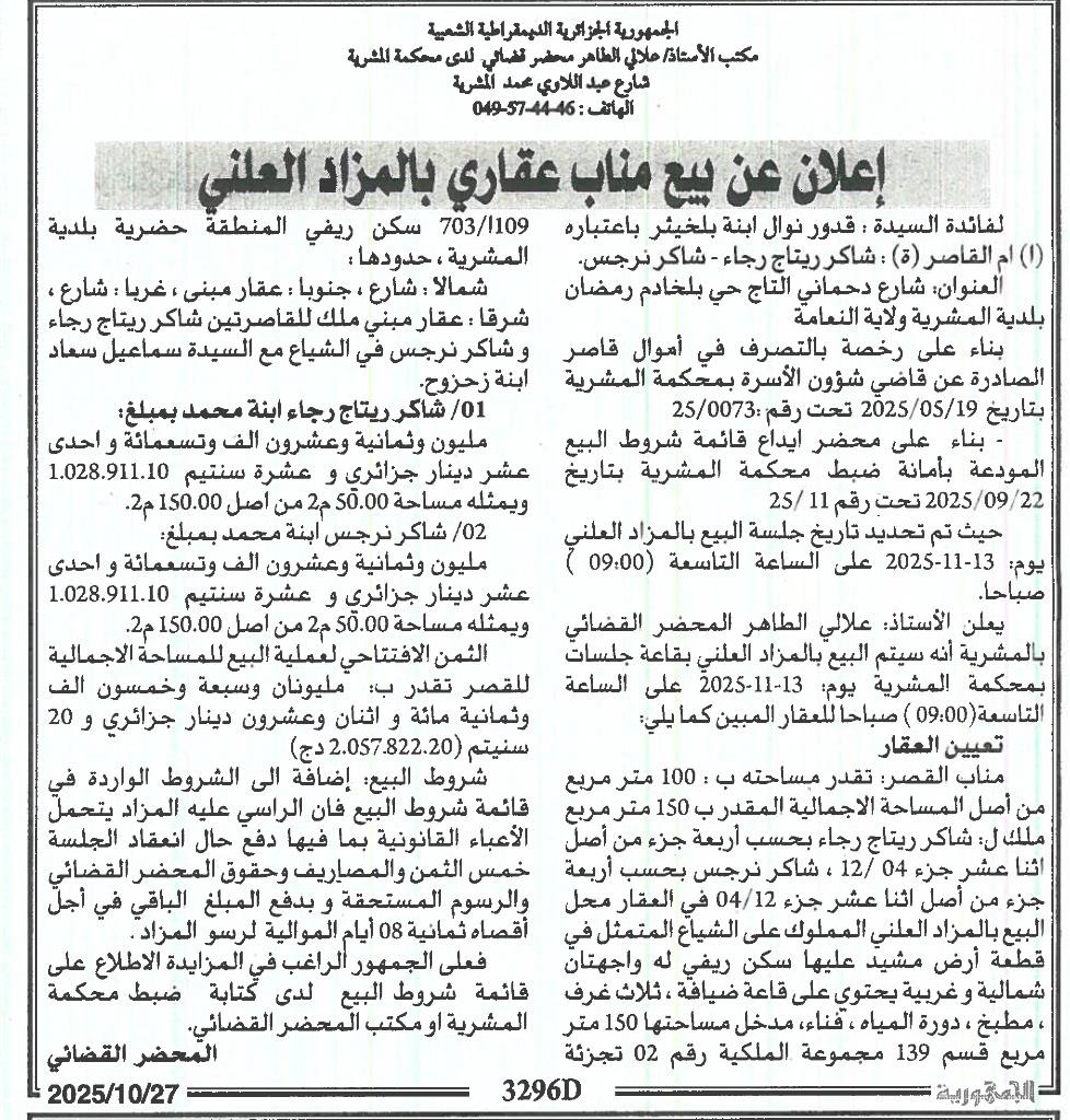 Il sera procédé à la vente au plus offrant et dernier enchérisseur le :