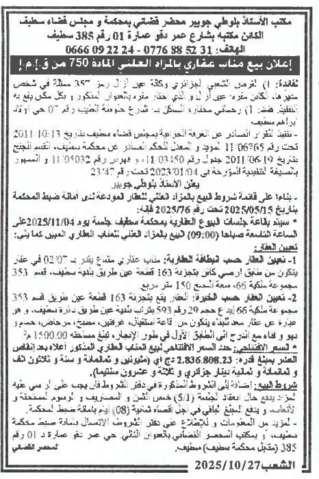 Il sera procédé à la vente au plus offrant et dernier enchérisseur le :