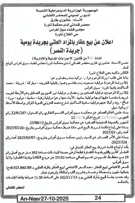 Il sera procédé à la vente au plus offrant et dernier enchérisseur le :