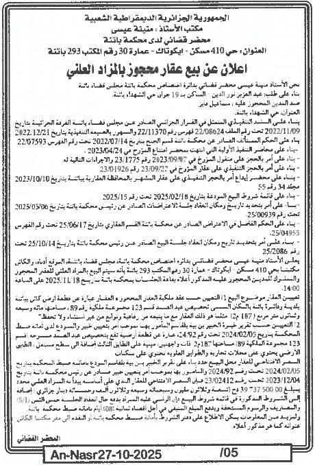Il sera procédé à la vente au plus offrant et dernier enchérisseur le :