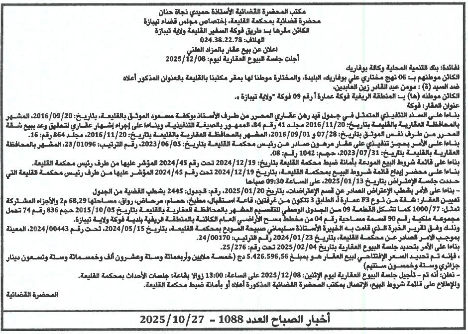 | Paru dans le journal : اخبار الصباح | |