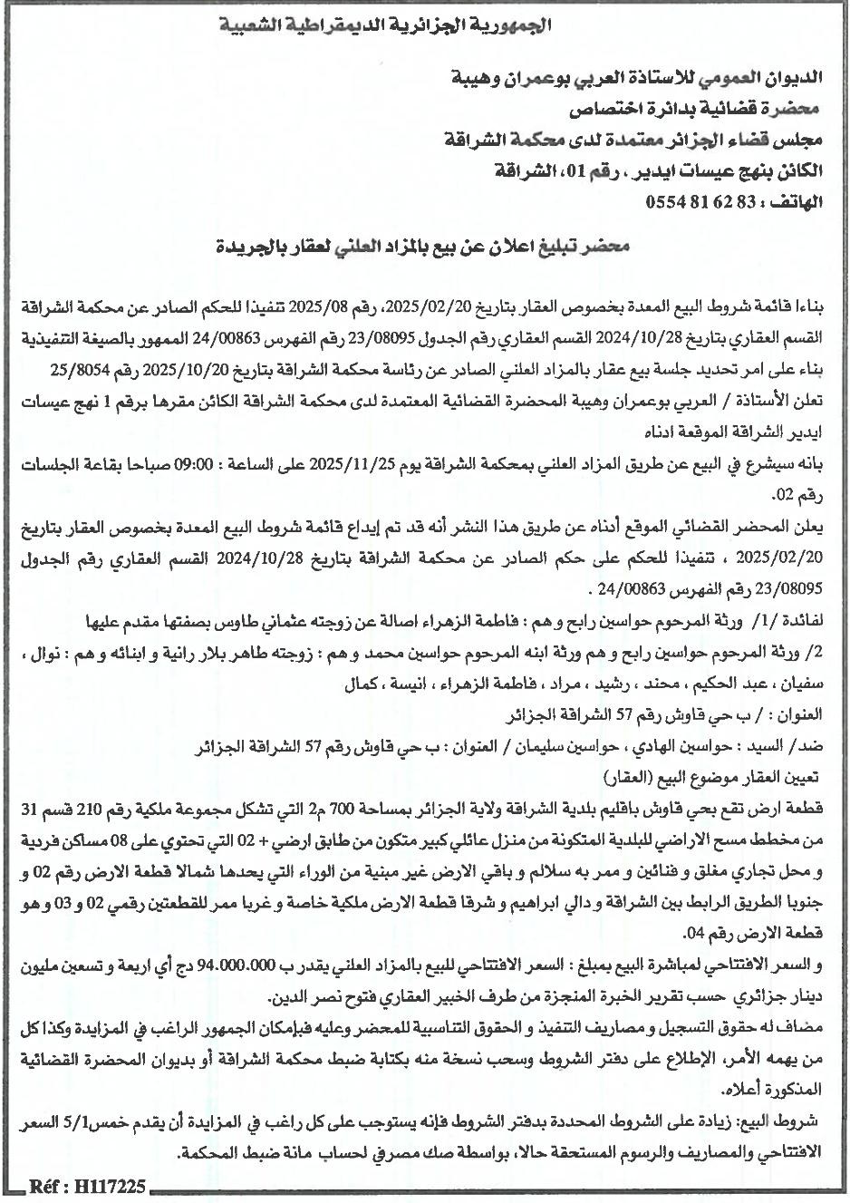 Il sera procédé à la vente au plus offrant et dernier enchérisseur le :