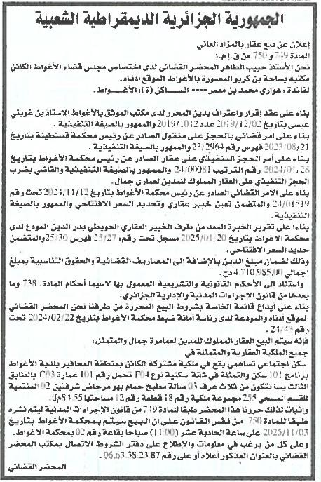 Il sera procédé à la vente au plus offrant et dernier enchérisseur le :