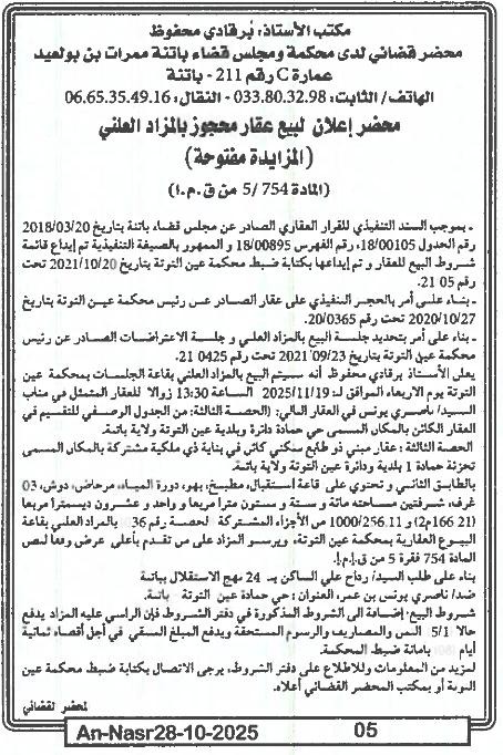 Il sera procédé à la vente au plus offrant et dernier enchérisseur le :