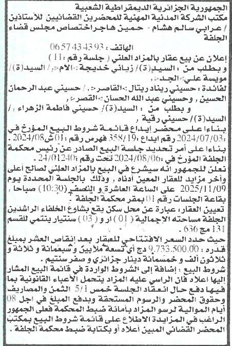 Il sera procédé à la vente au plus offrant et dernier enchérisseur le :