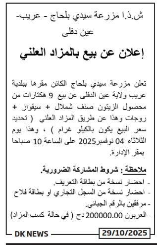 Il sera procédé à la vente au plus offrant et dernier enchérisseur le :