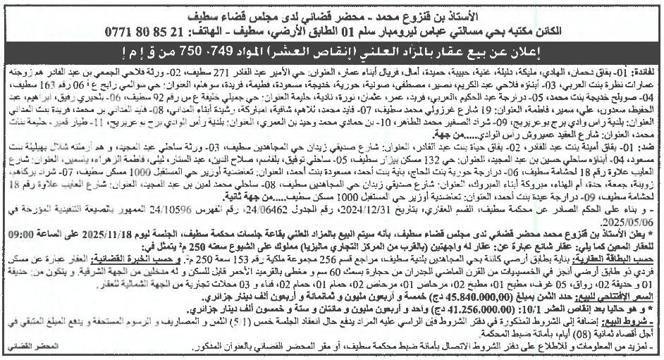 Il sera procédé à la vente au plus offrant et dernier enchérisseur le :