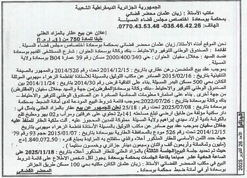 Il sera procédé à la vente au plus offrant et dernier enchérisseur le :