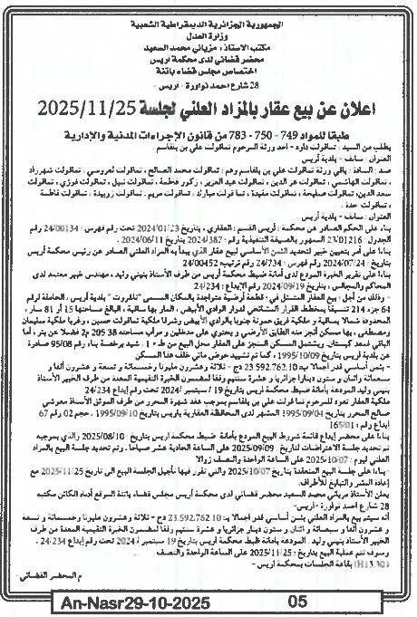 Il sera procédé à la vente au plus offrant et dernier enchérisseur le :