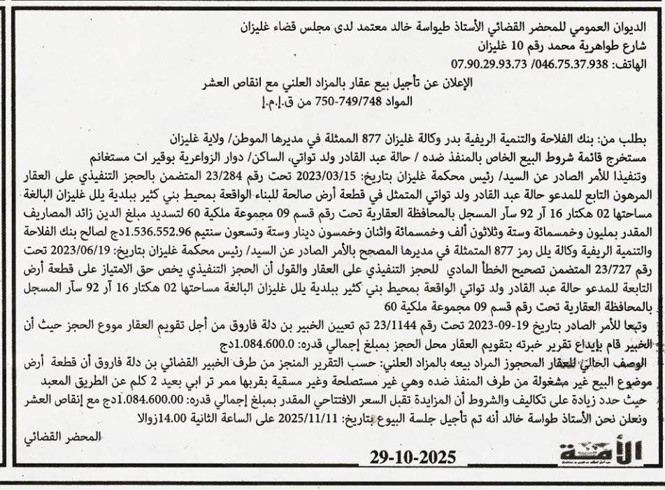 Il sera procédé à la vente au plus offrant et dernier enchérisseur le :
