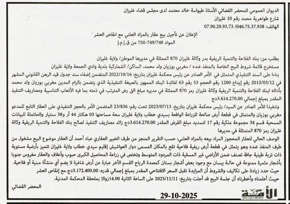 Il sera procédé à la vente au plus offrant et dernier enchérisseur le : 11/11/2025';