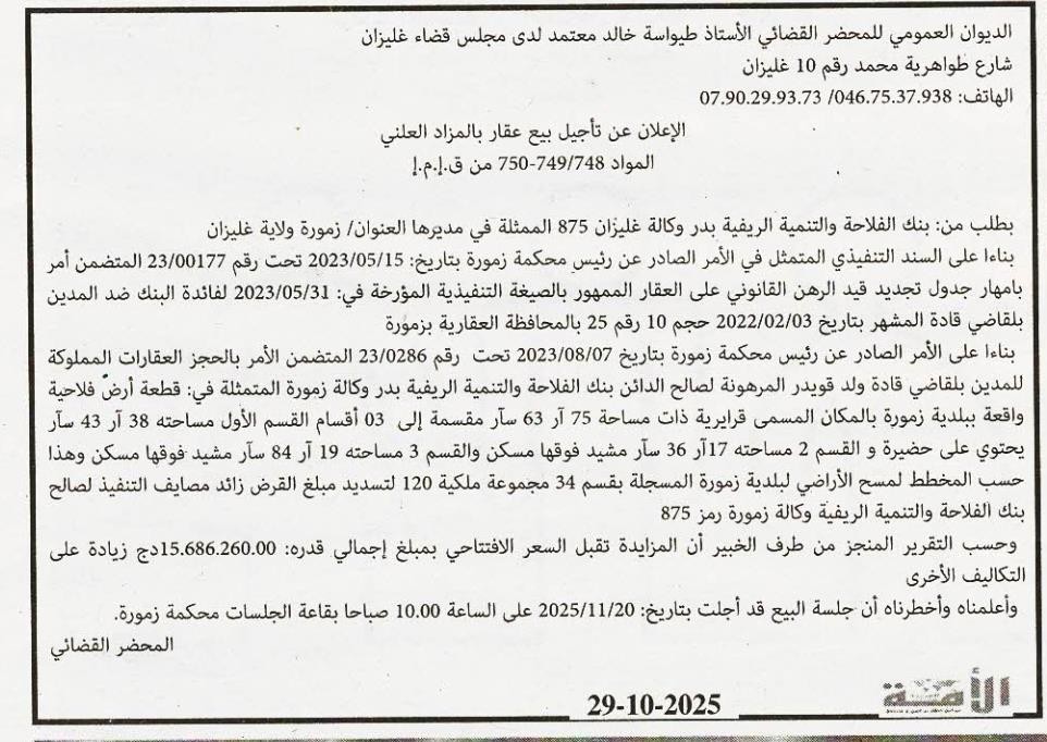 Il sera procédé à la vente au plus offrant et dernier enchérisseur le :