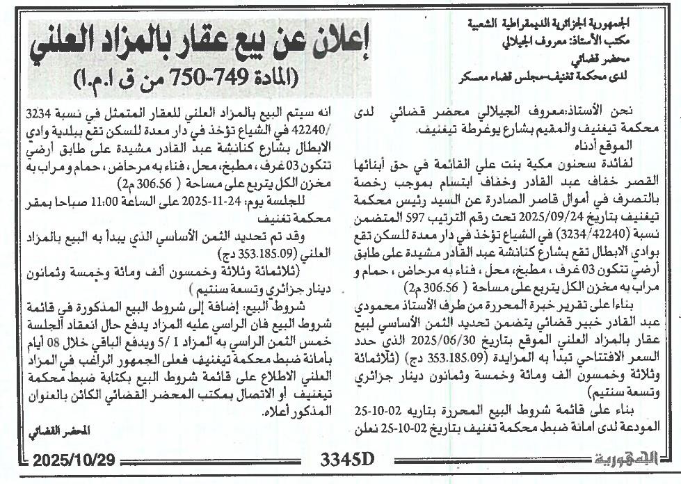 Il sera procédé à la vente au plus offrant et dernier enchérisseur le :