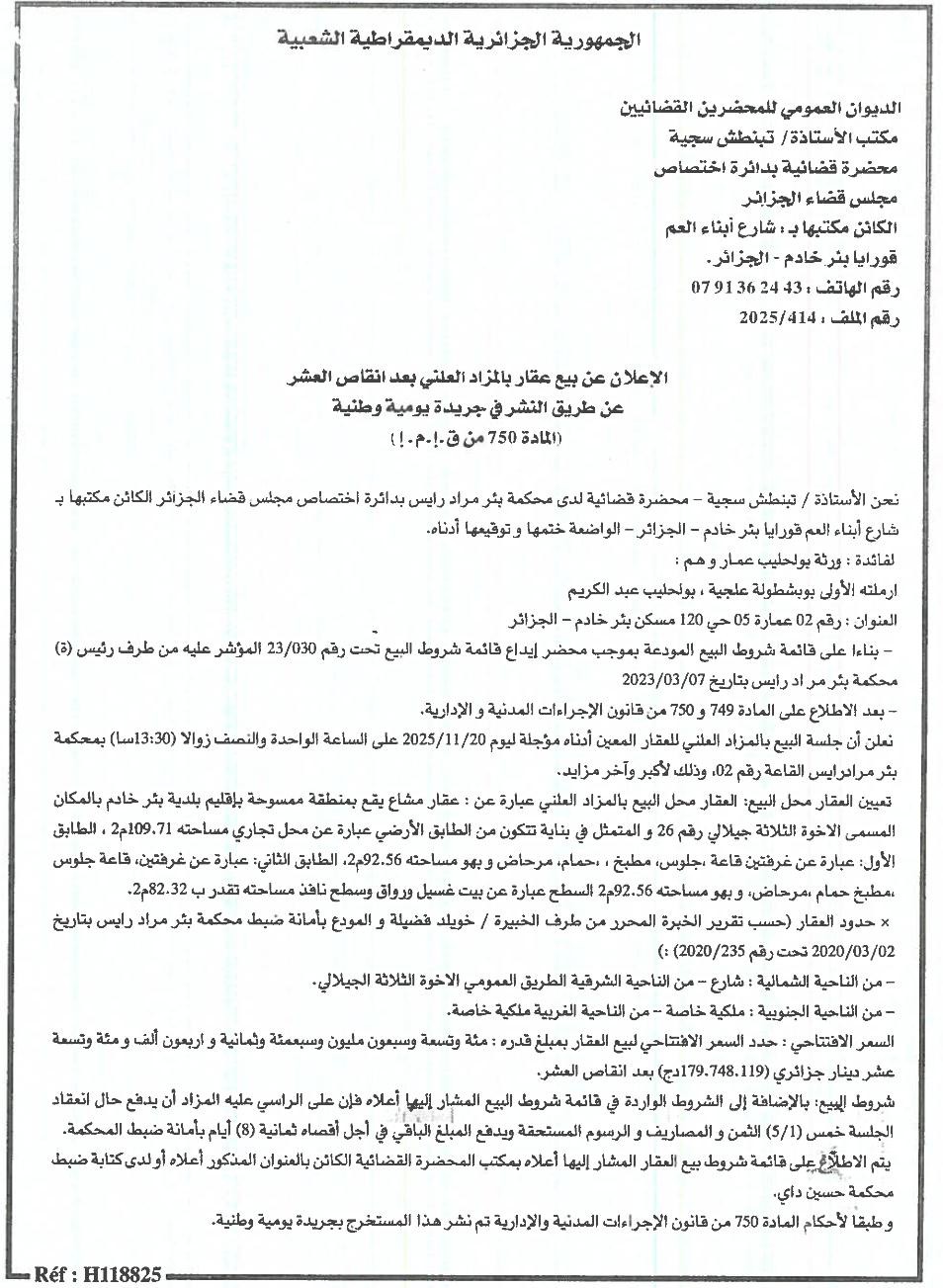 Il sera procédé à la vente au plus offrant et dernier enchérisseur le :