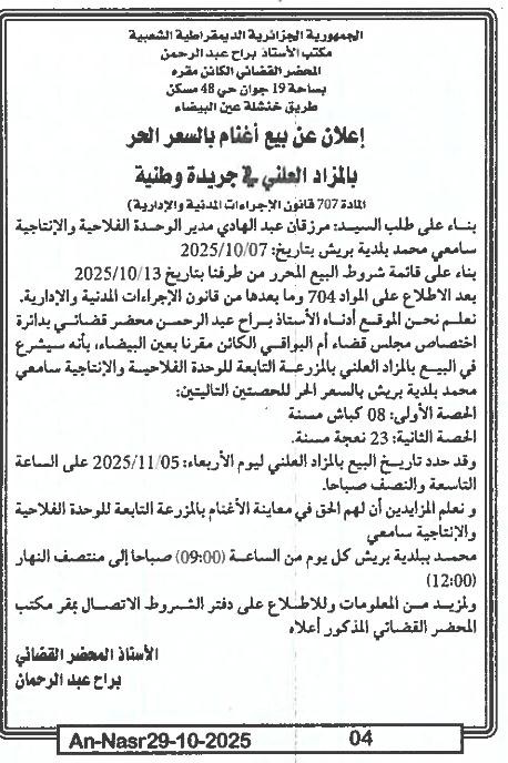 Il sera procédé à la vente au plus offrant et dernier enchérisseur le :