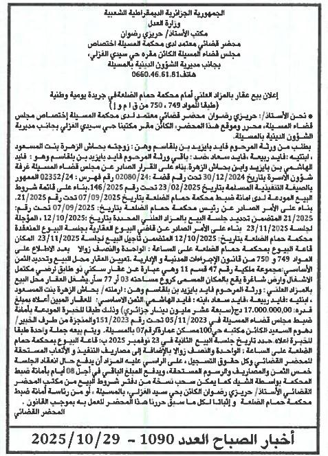 Il sera procédé à la vente au plus offrant et dernier enchérisseur le :