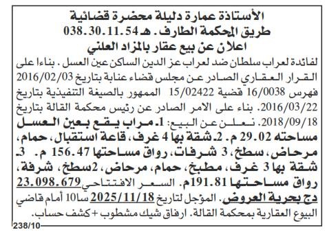 Il sera procédé à la vente au plus offrant et dernier enchérisseur le :