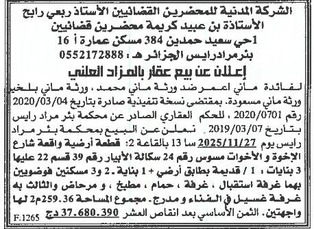 Il sera procédé à la vente au plus offrant et dernier enchérisseur le :