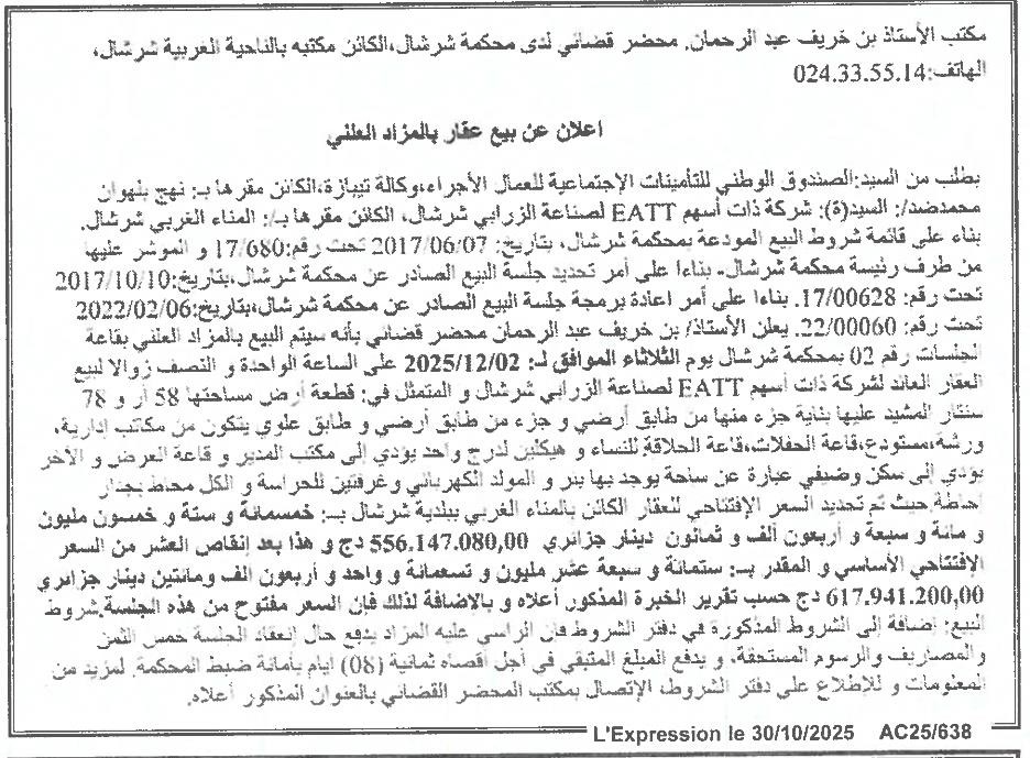 Il sera procédé à la vente au plus offrant et dernier enchérisseur le :